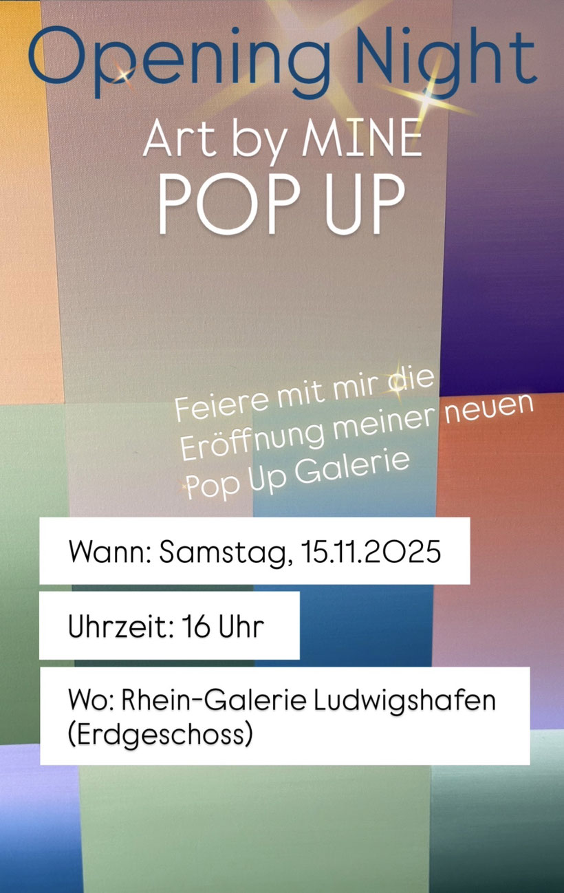 Art by MINE POP UP Galerie, 15. November - 28. Februar 2025, Öffnungszeiten: Mo-So 10 Uhr - 20 Uhr Rhein Galerie, Ludwigshafen